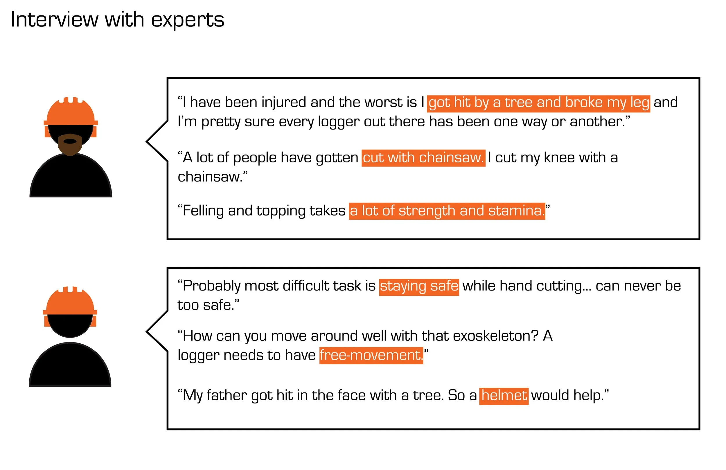Looking for the causes of injuries/deaths of logging workers was critical. Researching on the ways how the logging workers get injured, interviewing logging workers for their personal story and collecting the resources to find the problems.