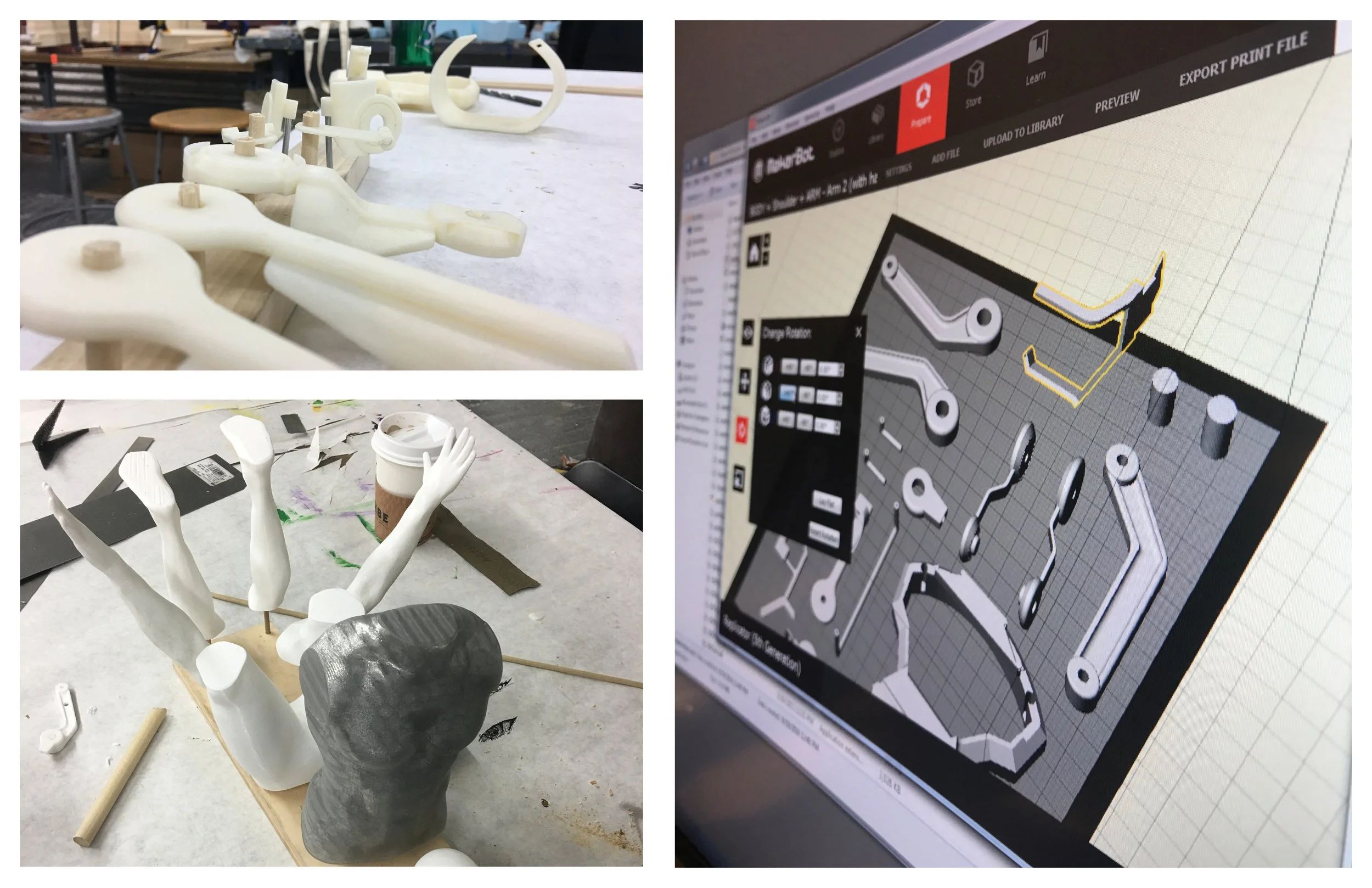 After getting the idea of exoskeleton, started applying the strength, protection and free movement aspect in the exoskeleton by creating iterations of 3D printed parts. Also, creating a 1:1 scale model visually helped to see how it can look like in real life.